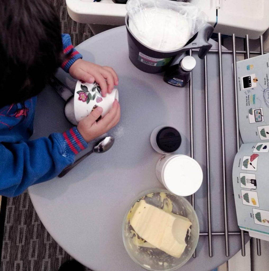 It even got to the point that I’d try and take over pouring, measuring, stirring, just so I’d be able to contain the mess. It was simply frustrating and I doubt either of us had any fun.