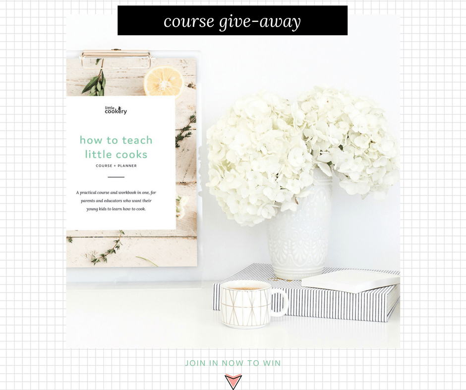 To get a head start on learning how to cook with kids we’re giving away a complete Little Cookery course and recipe project packs. The course teaches you into considering all things cooking in light of your own kids and environment.
