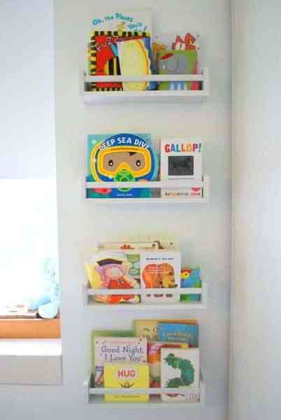 - Have a place for everything. And everything in it’s place. I know I know, you’ve heard it before. Seriously though, it’s a must to create a designated spot for things that can easily pile up like clothes, backpacks, papers of mail, used dishware, art supplies, electronics, anything and everything. One idea can be getting a bookcase from Walmart or Ikea and turn it into a cute sitting area in addition to storing matching storage containers inside the cubicles! Here’s an awesome example from littlebitsofhome